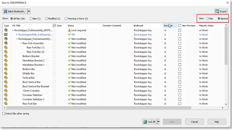 Have it your way! Get the best of both worlds and views for both Nested and Flat View as you can now take advantage of all the sorting options in Nested view as well, such as new and modified, from the Save to 3DEXPERIENCE dialog box.
