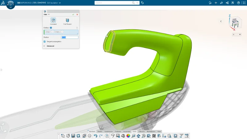 The new Working Zone for subdivision modeling helps you stay “in the zone,” so to speak. With the Working Zone you can select a specific part of a component that you’d like to edit by selecting a Working Zone on a subdivision mesh. This not only declutters your space but helps reduce errors, so you don’t accidentally edit another node, loop or face outside that area. The Working Zone enables you to see the whole assembly while staying focused on one area with less chance of errors.