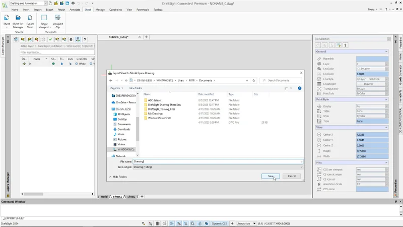 Your wish is our command. With all the new commands in DraftSight 2024, you can stay more productive than ever, including when it comes to dealing with sheets. With the new Export Sheet command, you can export all visible entities from an active sheet viewport and entities from the sheets to the new drawing.