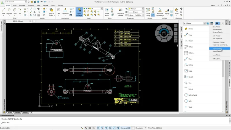 You can also efficiently create new palettes simply by dragging and dropping or importing and exporting pre-existing palettes created in other 2D CAD solutions.