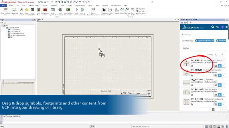 Create new electrical designs and libraries faster by dragging electrical content directly from the ECP. Simply drag and drop content right into the graphic area of Electrical Schematic Designer.