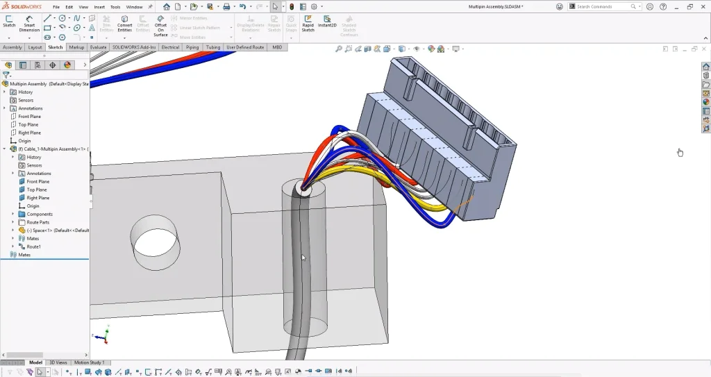 Faster 3D electrical routing. Performance with routing of wires in 3D has been vastly improved enabling users to 3xperiment more quickly with electrical route path choices inside complex equipment to refine the overall product design.
