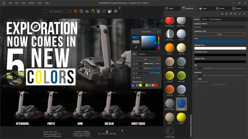 SOLIDWORKS Visualize – explore more options and define colors easier.