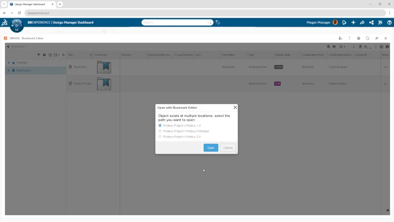 Quickly navigate from any object to its associated bookmarks using a streamlined “Open With” feature, supporting multiple applications.