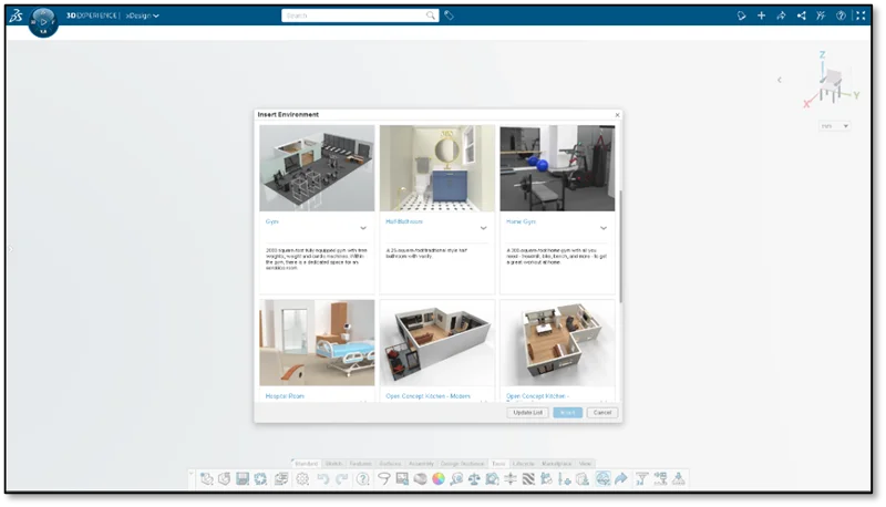 One of the biggest user experience features is the ability to design in the context of your environment by inserting design environments. This is a great feature that helps you vividly visualize your products in their intended surroundings and ensure that products are designed to the correct scale. Elevate your design process with this feature and achieve excellence in product design.