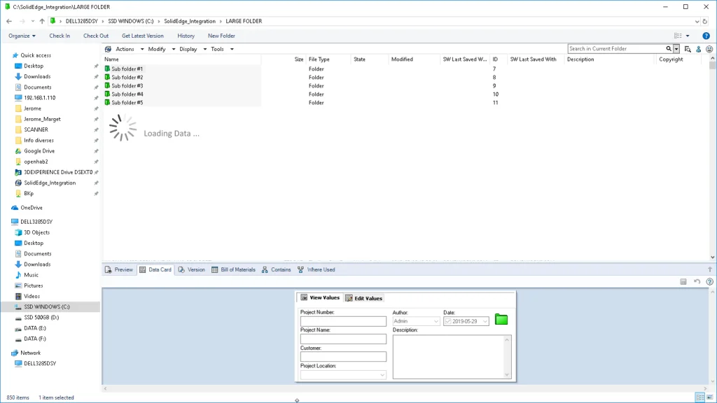When opening projects from the PDM vault, you no longer need to wait for the entire project to load before conducting further browsing. We have added new functionality that loads project data in the background. Performance improves significantly for folders with a large number of files or database servers with high latency.
