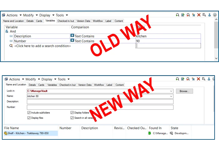 We put a lot of R&D effort into improving the search mechanism in SOLIDWORKS PDM 2020. Previous versions were limited to a search box using very basic parameters. Now, a wide range of search parameters is compatible with PDM search, reducing the time and effort needed to find your information.