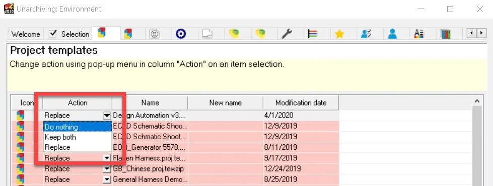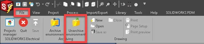 - Perform an Archive of the current SOLIDWORKS Electrical environment from your company system.